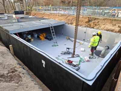 Zbiornik technologiczny do magazynowania ścieków oczyszczonych w miejscowości Słupsk Realizacja zadania budowy zbiornika technologicznego do magazynowania ścieków oczyszczonych w miejscowości Słupsk. Zbiornik o pojemności 150 m3, łącznej długości 18,9 m,...